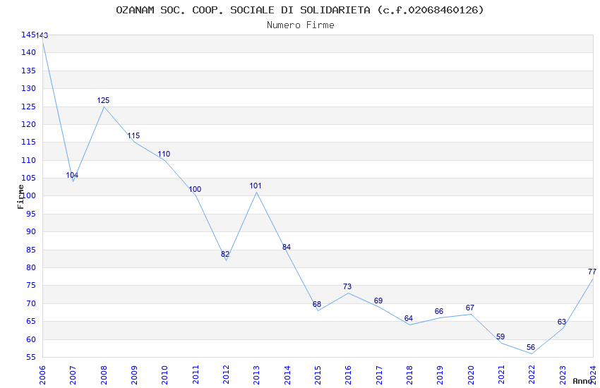 | 2024 | 77 | 3.716,45 | 48,27 | 14.396 | 3.148 | 243 | 17 |