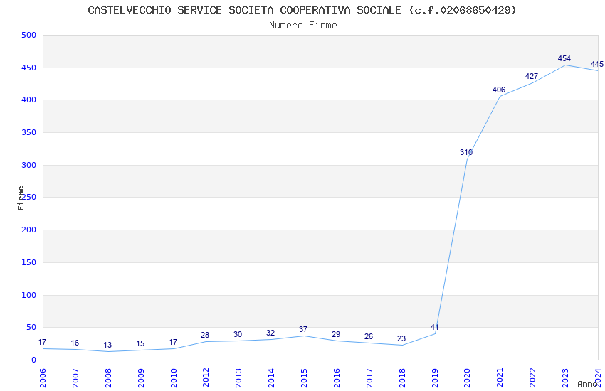 | 2019 | 41 | 768,84 | 18,75 | 39.685 | 1.043 | 403 | 28 |