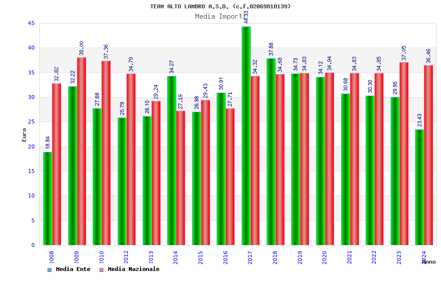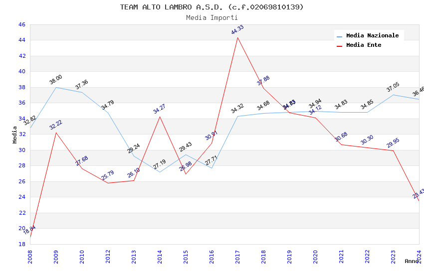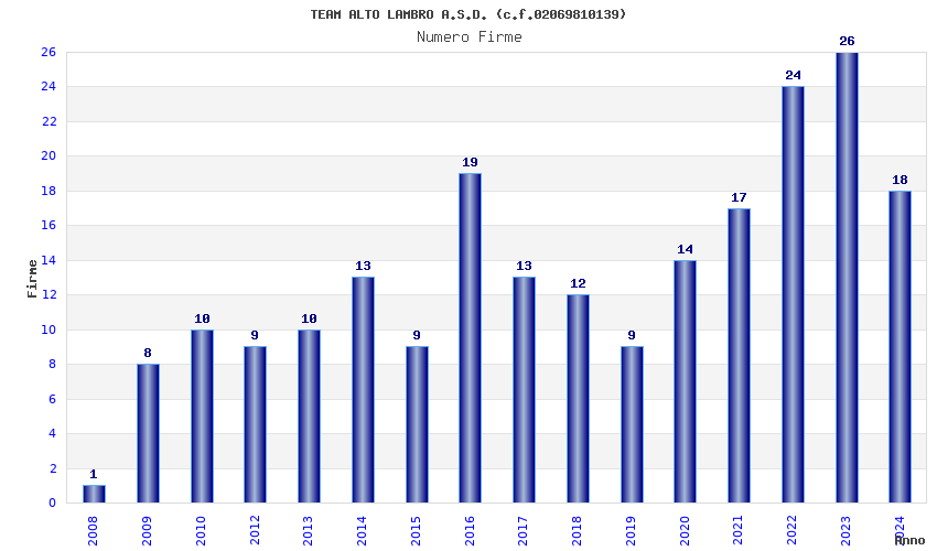 | Anno | Firme | Importi | Media | Naz. | Reg. | Prov. | Comu. |