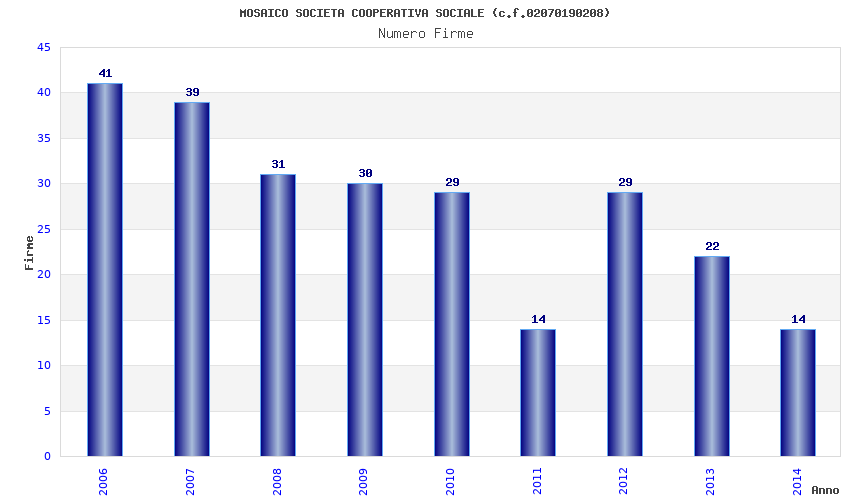 | Anno | Firme | Importi | Media | Naz. | Reg. | Prov. | Comu. |