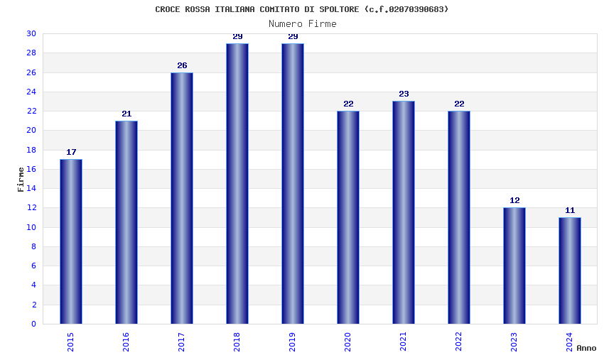 | Anno | Firme | Importi | Media | Naz. | Reg. | Prov. | Comu. |