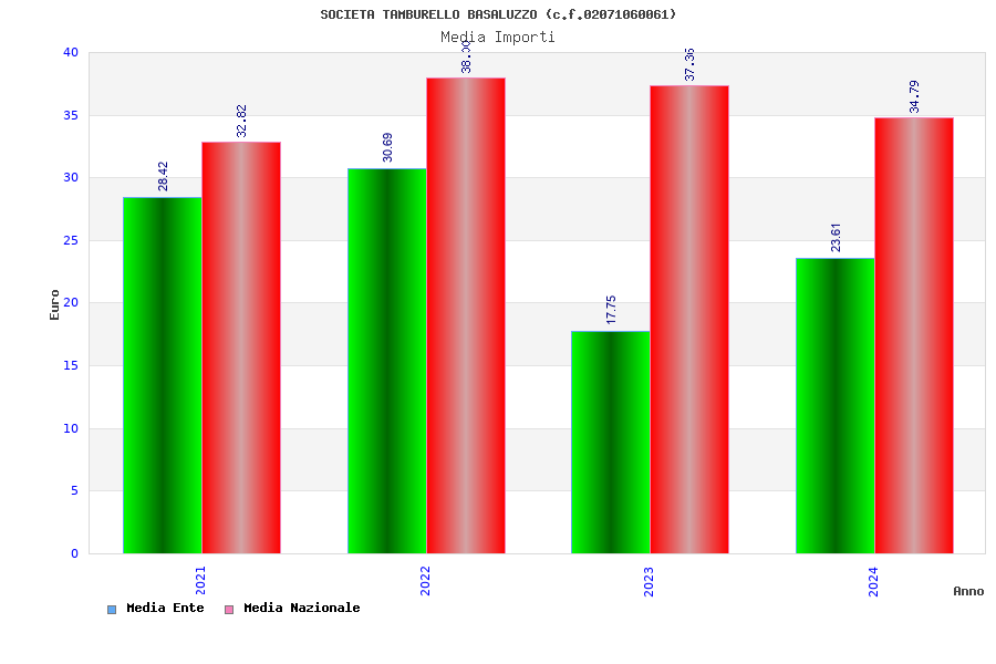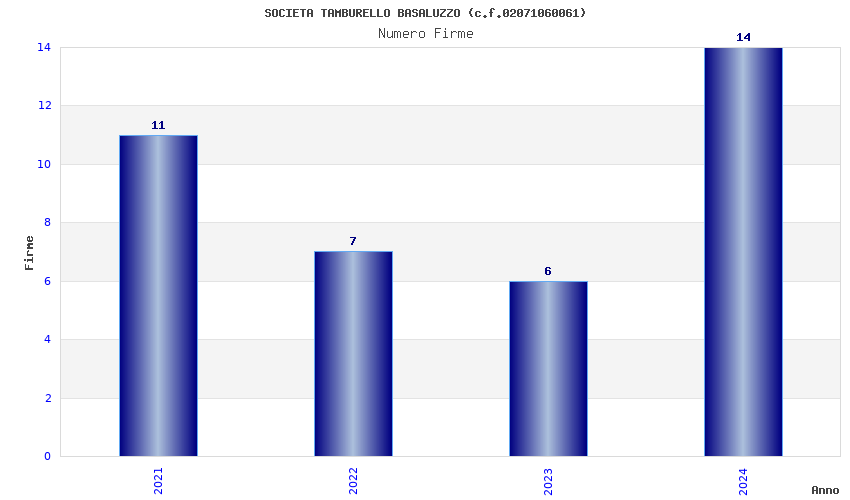 | Anno | Firme | Importi | Media | Naz. | Reg. | Prov. | Comu. |