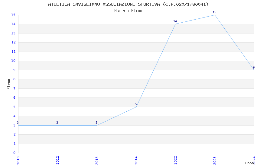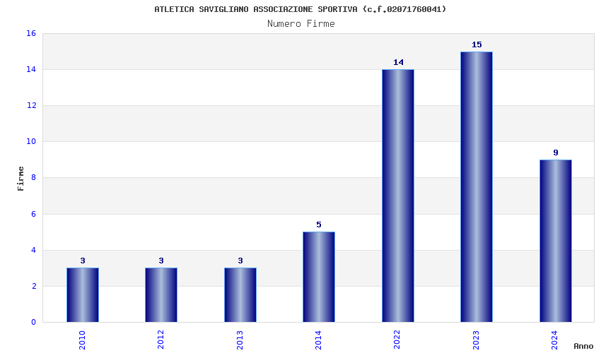 | Anno | Firme | Importi | Media | Naz. | Reg. | Prov. | Comu. |