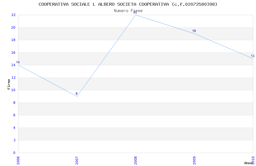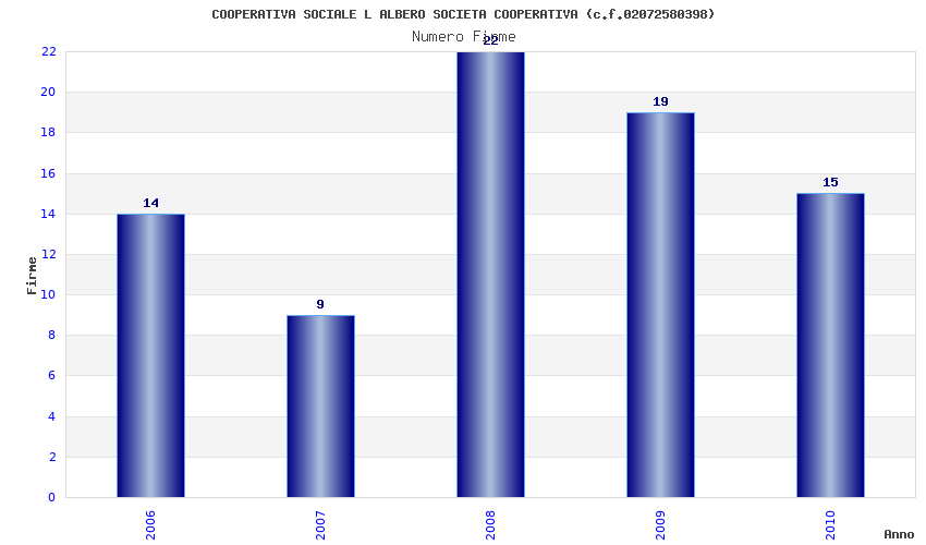 | Anno | Firme | Importi | Media | Naz. | Reg. | Prov. | Comu. |