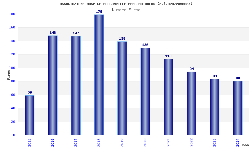 | Anno | Firme | Importi | Media | Naz. | Reg. | Prov. | Comu. |