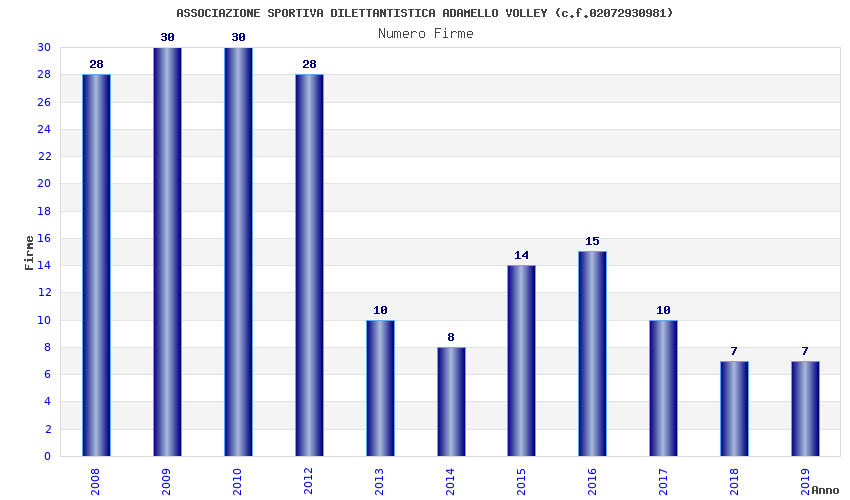 | Anno | Firme | Importi | Media | Naz. | Reg. | Prov. | Comu. |