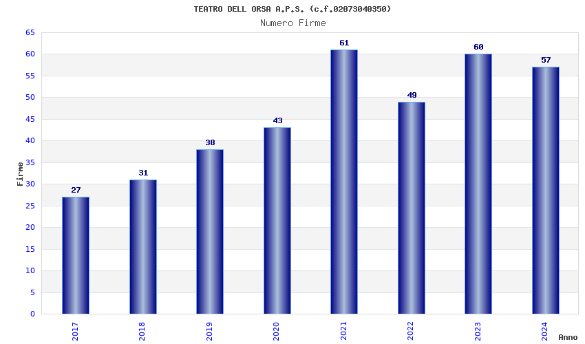 | Anno | Firme | Importi | Media | Naz. | Reg. | Prov. | Comu. |