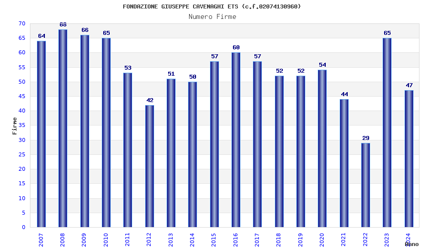 | Anno | Firme | Importi | Media | Naz. | Reg. | Prov. | Comu. |