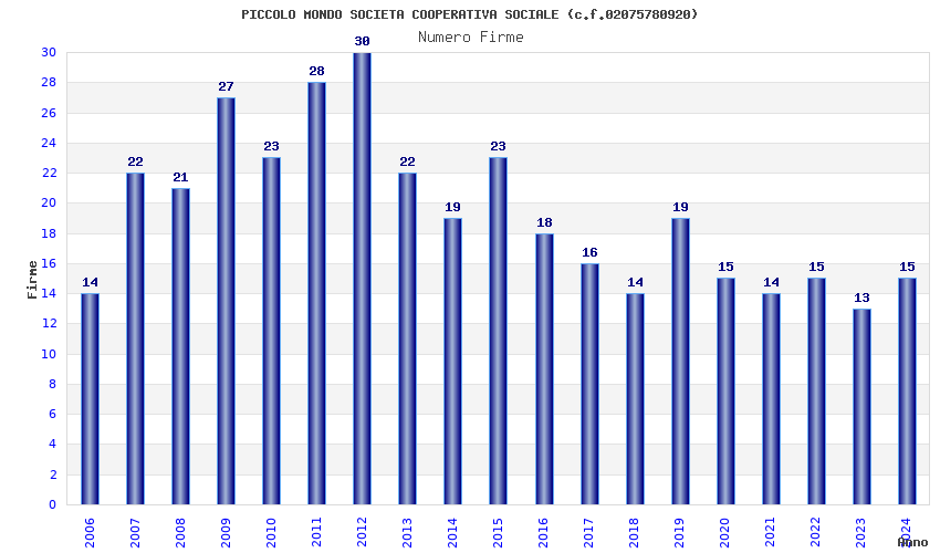| Anno | Firme | Importi | Media | Naz. | Reg. | Prov. | Comu. |