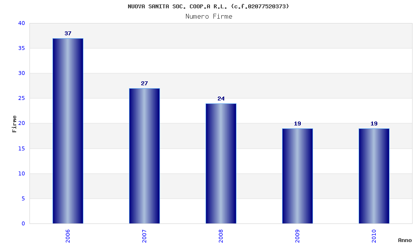 | Anno | Firme | Importi | Media | Naz. | Reg. | Prov. | Comu. |