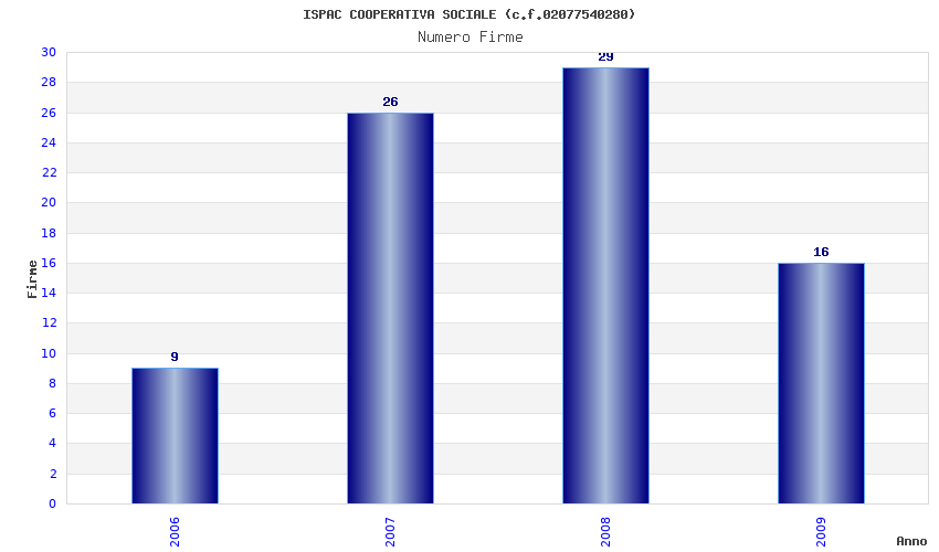 | Anno | Firme | Importi | Media | Naz. | Reg. | Prov. | Comu. |