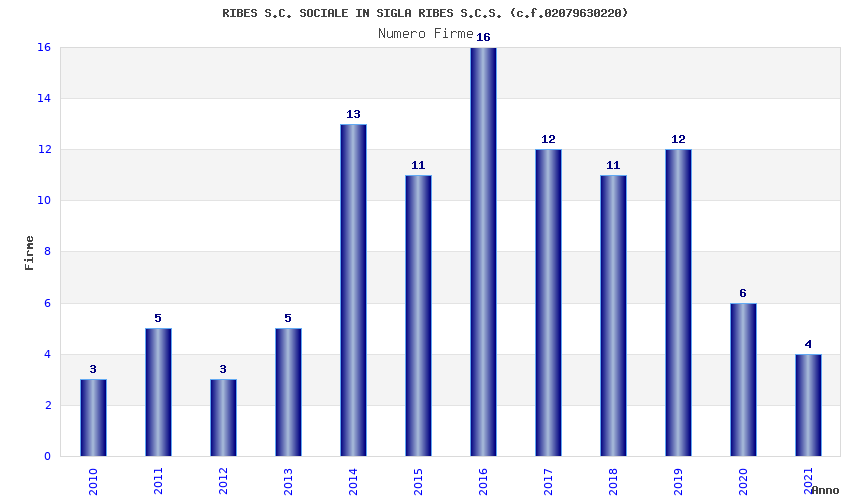 | Anno | Firme | Importi | Media | Naz. | Reg. | Prov. | Comu. |