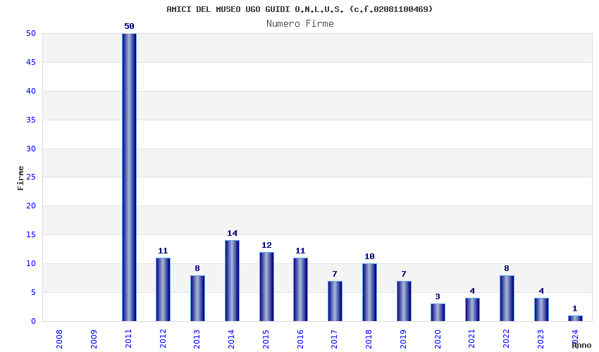 | Anno | Firme | Importi | Media | Naz. | Reg. | Prov. | Comu. |