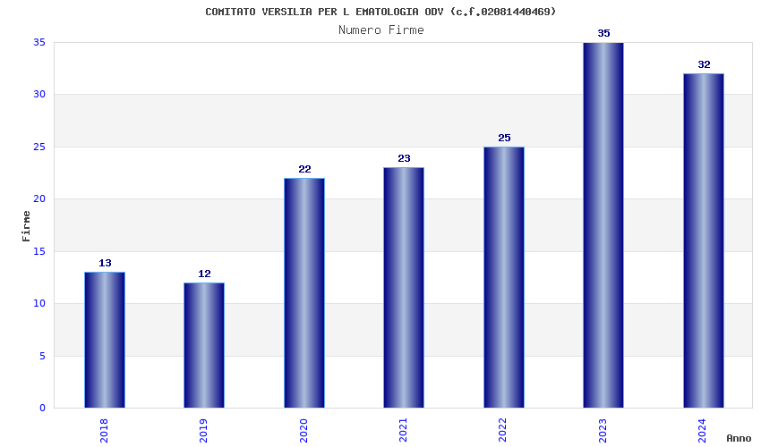 | Anno | Firme | Importi | Media | Naz. | Reg. | Prov. | Comu. |