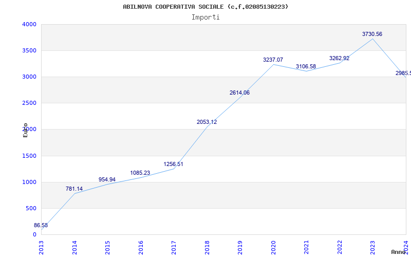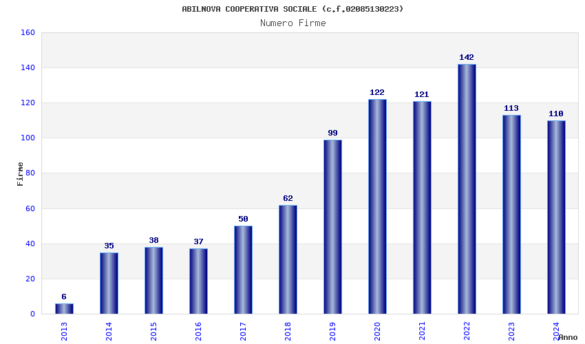 | Anno | Firme | Importi | Media | Naz. | Reg. | Prov. | Comu. |