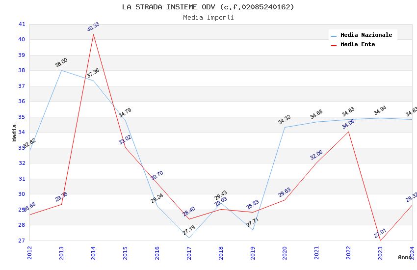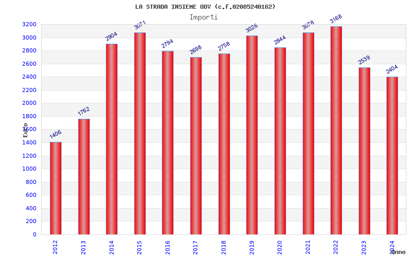 | Anno | Firme | Importi | Media | Naz. | Reg. | Prov. | Comu. |