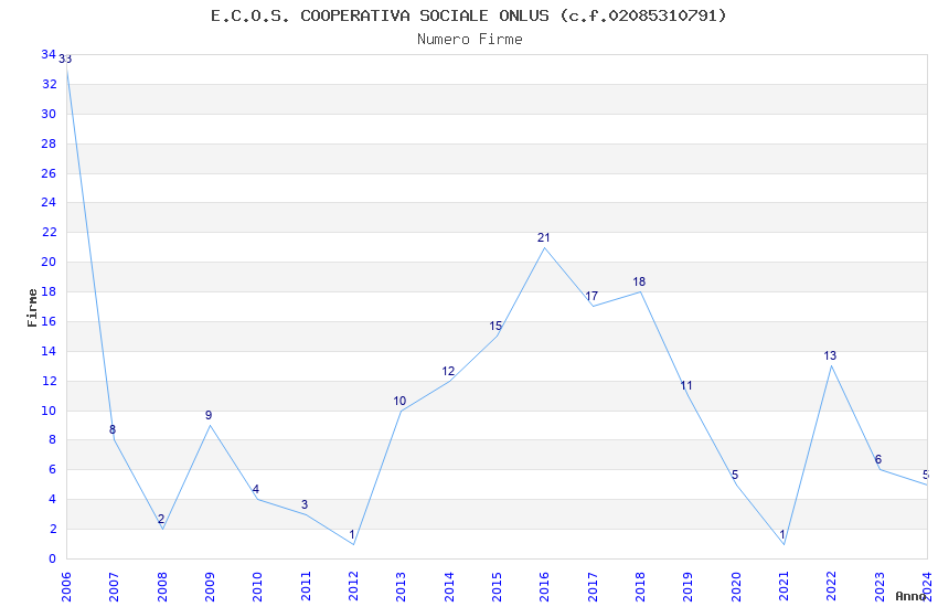 | Anno | Firme | Importi | Media | Naz. | Reg. | Prov. | Comu. |