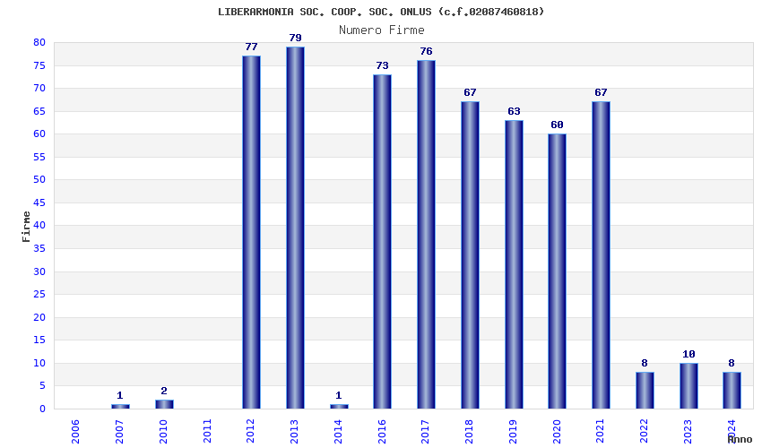 | Anno | Firme | Importi | Media | Naz. | Reg. | Prov. | Comu. |
