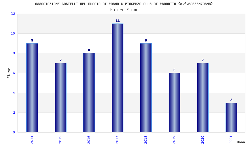 | Anno | Firme | Importi | Media | Naz. | Reg. | Prov. | Comu. |