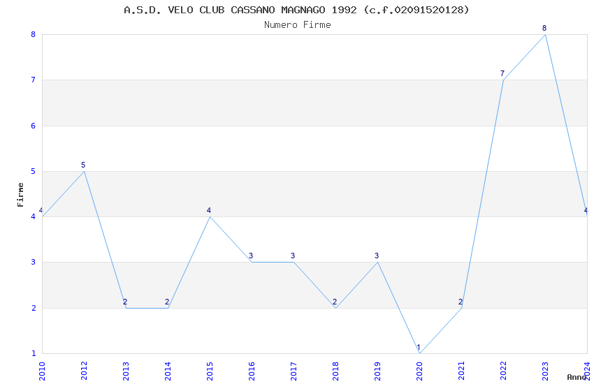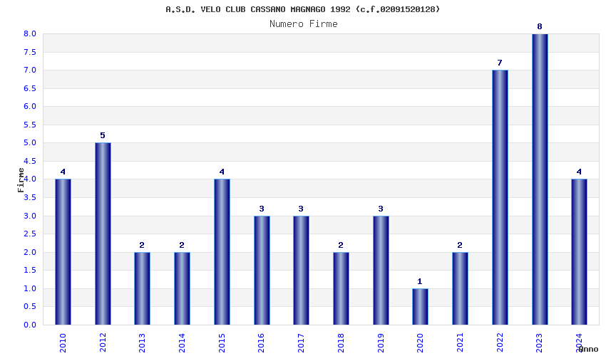 | Anno | Firme | Importi | Media | Naz. | Reg. | Prov. | Comu. |