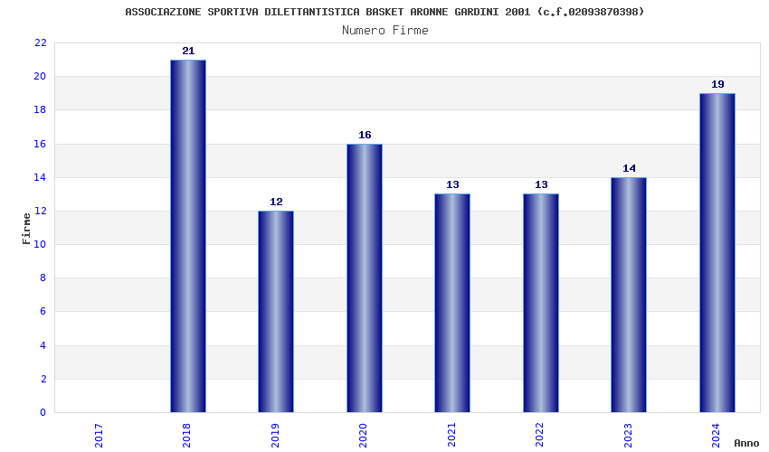 | 2018 | 21 | 406,91 | 19,38 | 47.511 | 4.217 | 376 | 3 |