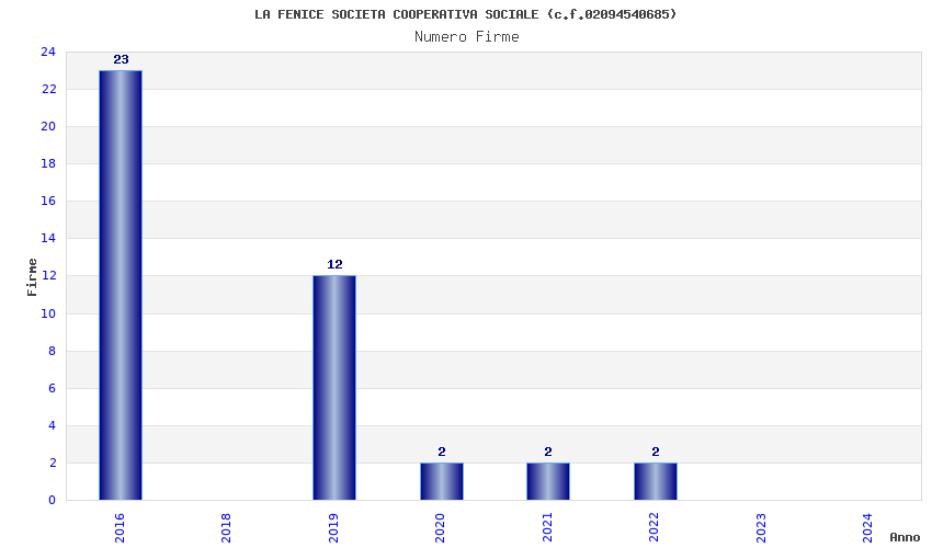 | Anno | Firme | Importi | Media | Naz. | Reg. | Prov. | Comu. |