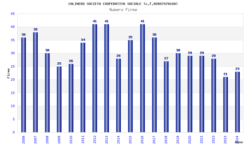 | Anno | Firme | Importi | Media | Naz. | Reg. | Prov. | Comu. |
