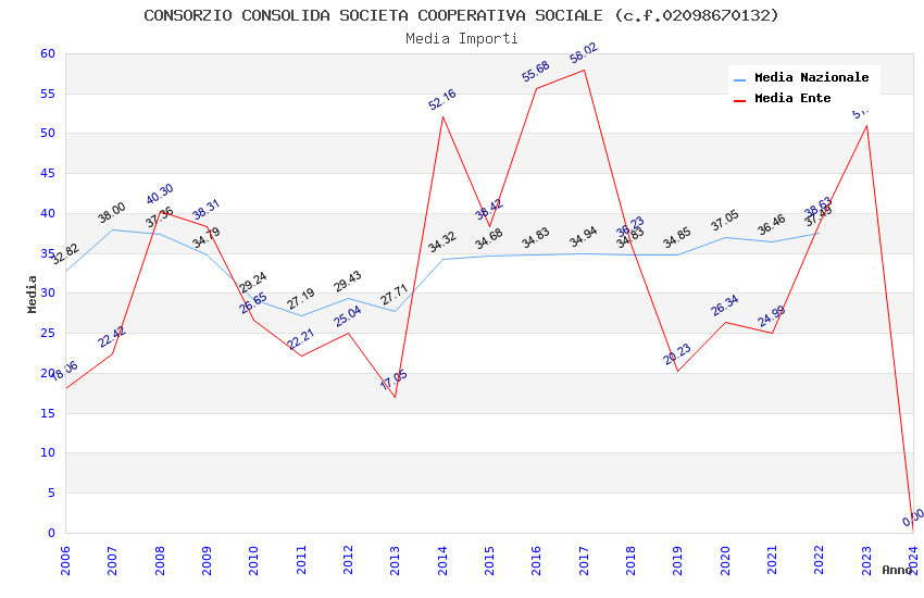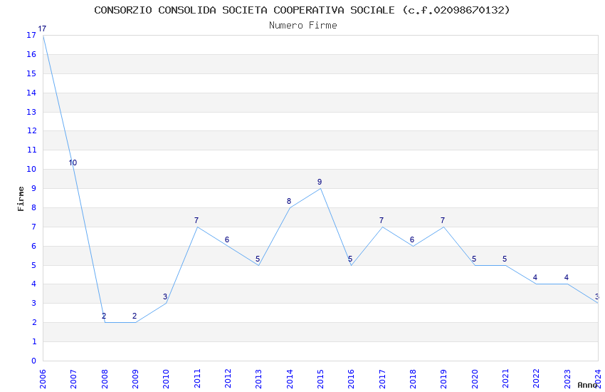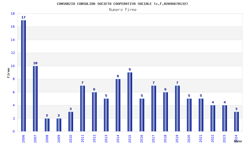 | Anno | Firme | Importi | Media | Naz. | Reg. | Prov. | Comu. |