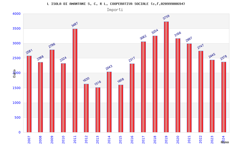 | Anno | Firme | Importi | Media | Naz. | Reg. | Prov. | Comu. |