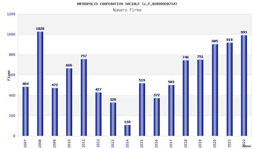 | 2014 | 110 | 2.417,71 | 21,98 | 19.327 | 907 | 128 | 3 |