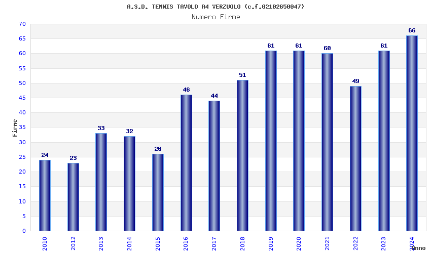 | 2023 | 61 | 2.375,76 | 38,95 | 20.816 | 1.531 | 236 | 2 |