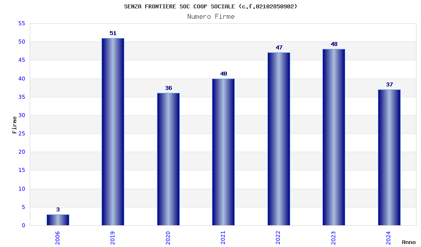 | Anno | Firme | Importi | Media | Naz. | Reg. | Prov. | Comu. |