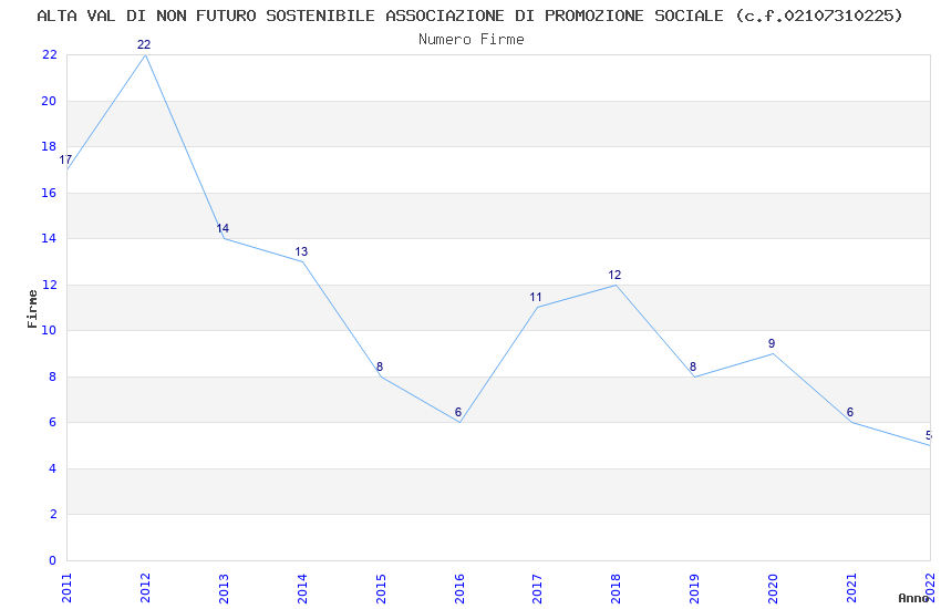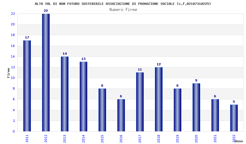 | Anno | Firme | Importi | Media | Naz. | Reg. | Prov. | Comu. |