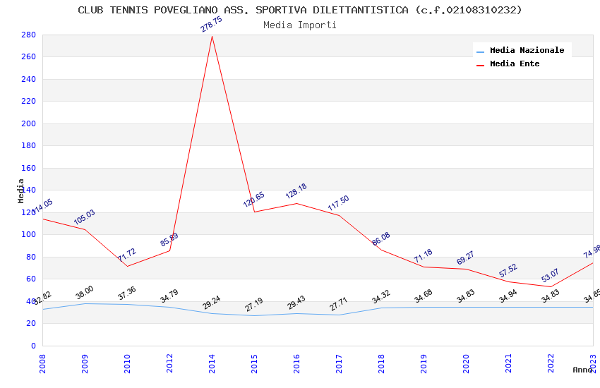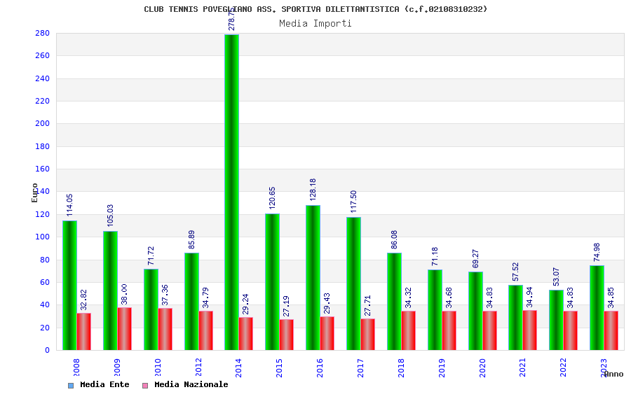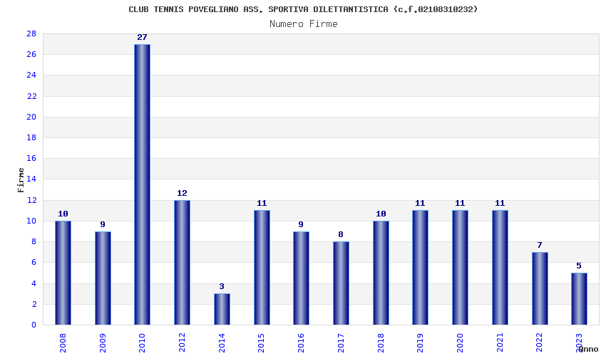| Anno | Firme | Importi | Media | Naz. | Reg. | Prov. | Comu. |