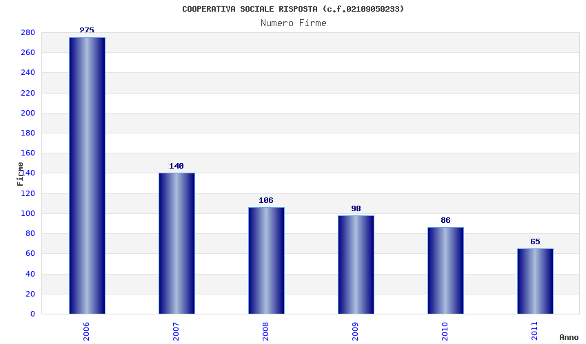 | Anno | Firme | Importi | Media | Naz. | Reg. | Prov. | Comu. |