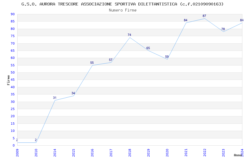 | 2023 | 78 | 5.806,53 | 74,44 | 9.281 | 2.127 | 182 | 1 |