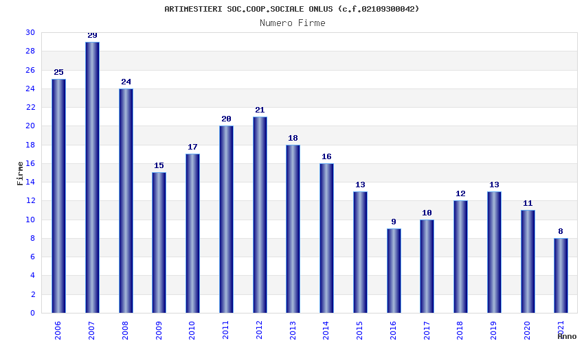 | Anno | Firme | Importi | Media | Naz. | Reg. | Prov. | Comu. |