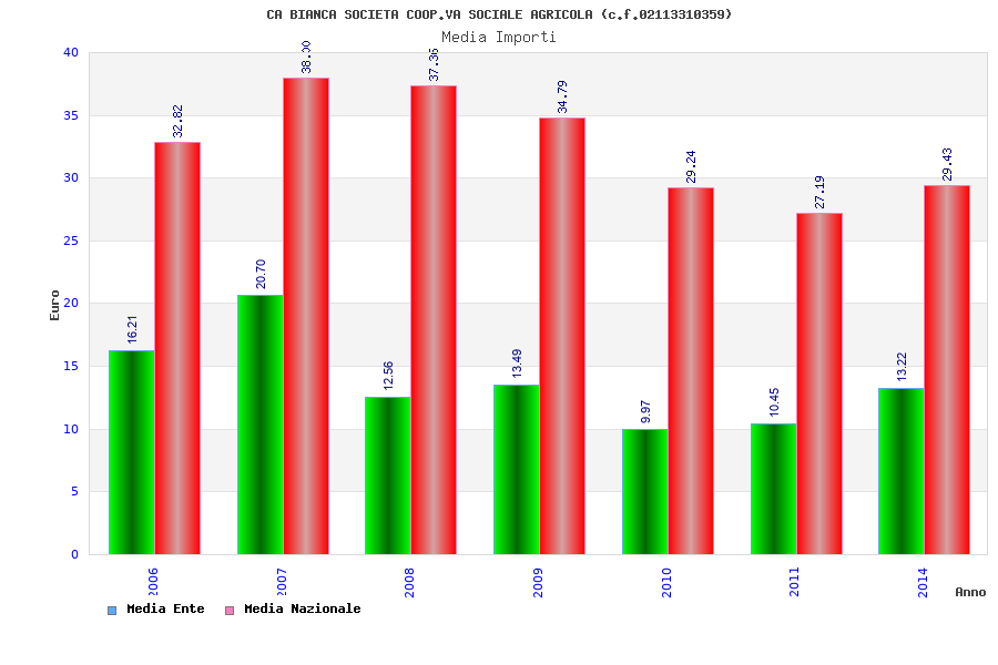 | Anno | Firme | Importi | Media | Naz. | Reg. | Prov. | Comu. |