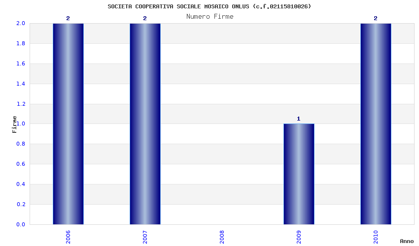 | Anno | Firme | Importi | Media | Naz. | Reg. | Prov. | Comu. |