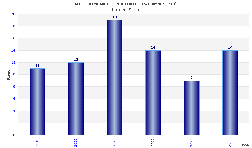 | Anno | Firme | Importi | Media | Naz. | Reg. | Prov. | Comu. |