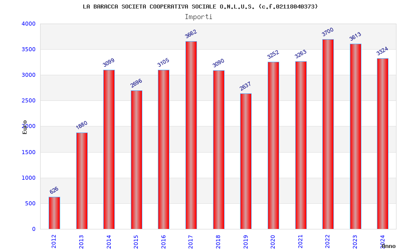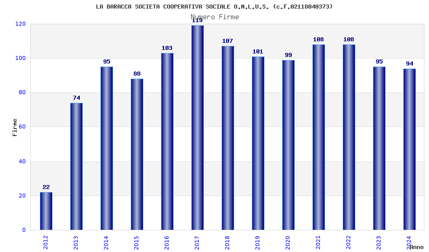 | Anno | Firme | Importi | Media | Naz. | Reg. | Prov. | Comu. |