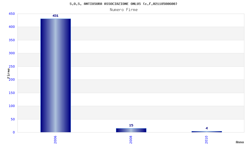 | Anno | Firme | Importi | Media | Naz. | Reg. | Prov. | Comu. |