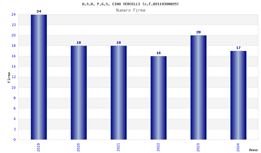 | Anno | Firme | Importi | Media | Naz. | Reg. | Prov. | Comu. |