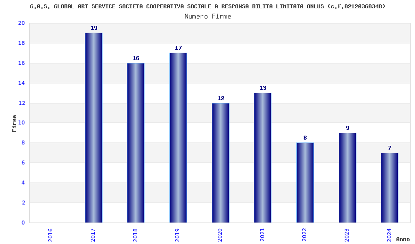 | Anno | Firme | Importi | Media | Naz. | Reg. | Prov. | Comu. |