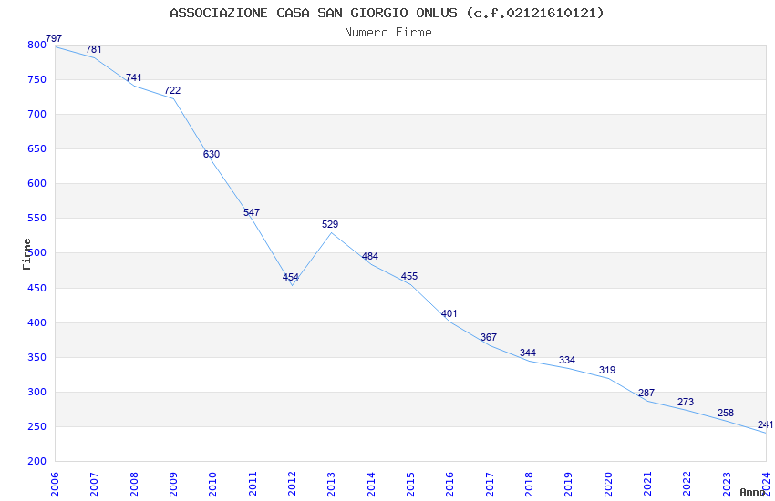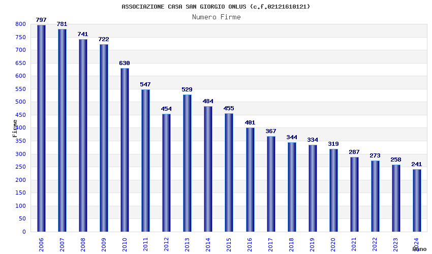 | Anno | Firme | Importi | Media | Naz. | Reg. | Prov. | Comu. |