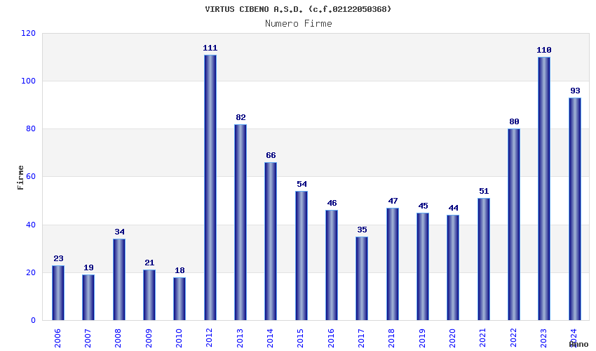 | 2023 | 110 | 4.397,05 | 39,97 | 12.240 | 1.078 | 167 | 15 |