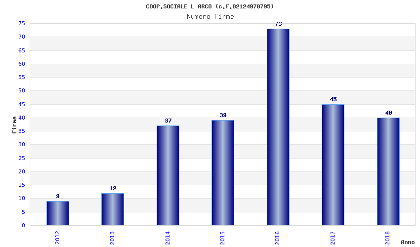 | Anno | Firme | Importi | Media | Naz. | Reg. | Prov. | Comu. |