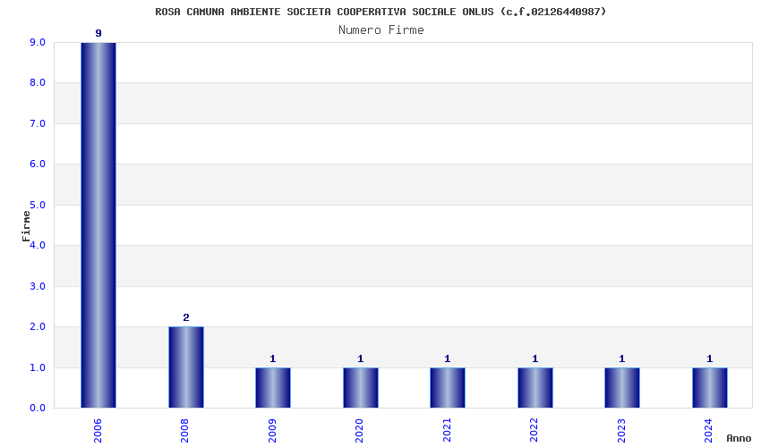 | Anno | Firme | Importi | Media | Naz. | Reg. | Prov. | Comu. |