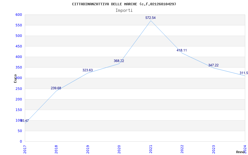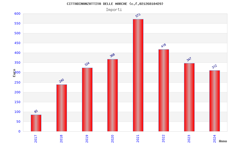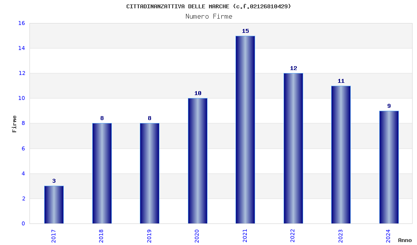 | Anno | Firme | Importi | Media | Naz. | Reg. | Prov. | Comu. |