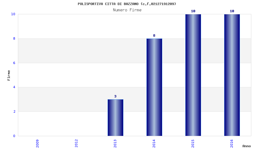 | Anno | Firme | Importi | Media | Naz. | Reg. | Prov. | Comu. |